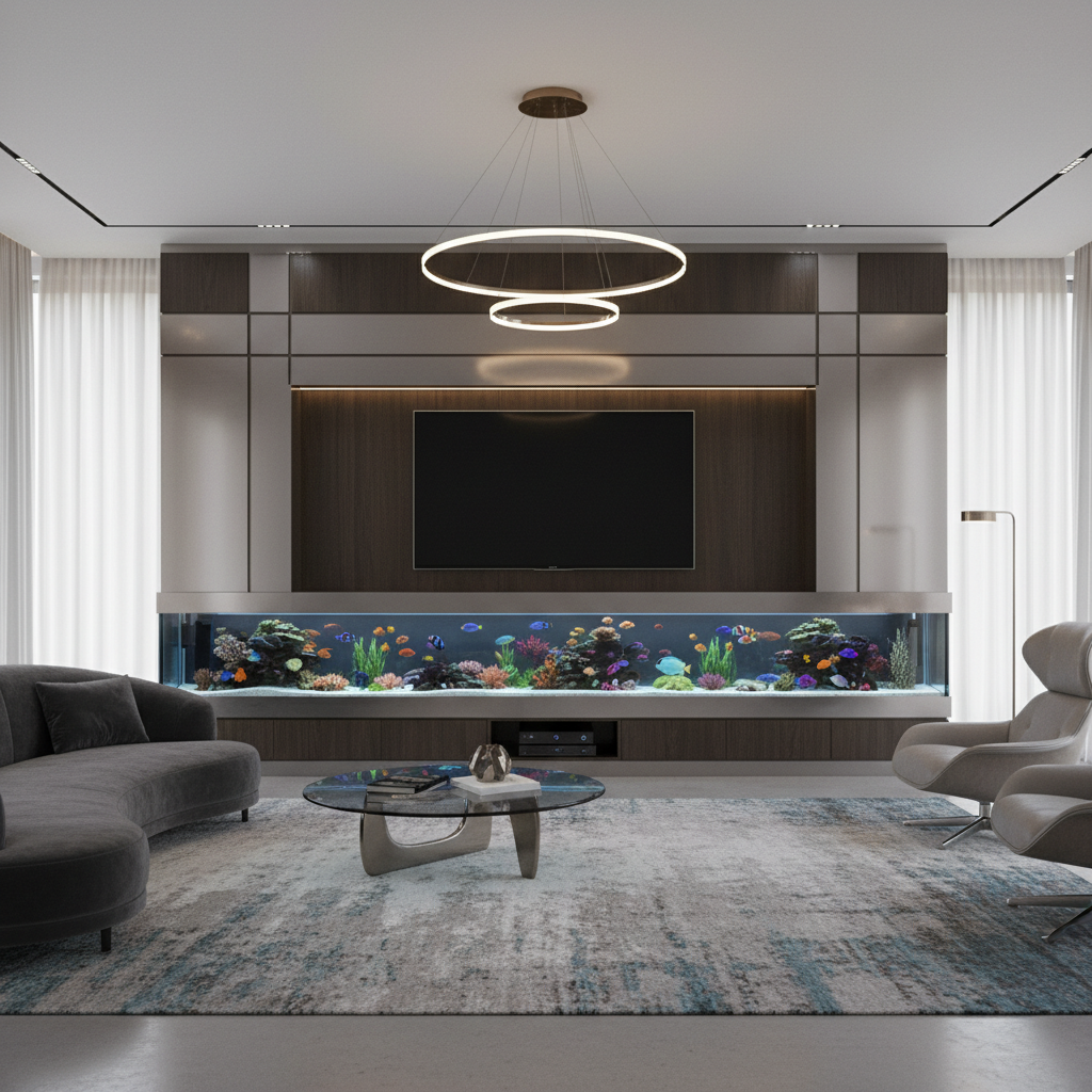 For a truly unique and calming feature, integrate a sleek, modern aquarium or a beautifully designed terrarium into your TV wall. The gentle movement of fish or lush greenery provides a living, dynamic element that contrasts beautifully with the technology, creating a serene and captivating focal point. Ensure proper structural support and maintenance access.
