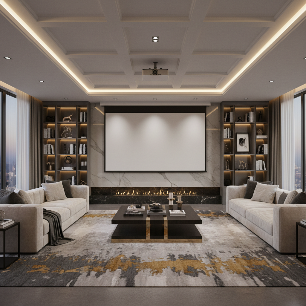 For the ultimate cinematic experience without a permanent screen, consider a hidden projector screen that descends from the ceiling. The projector can also be discreetly mounted. When not in use, the screen retracts, leaving a clean, uncluttered wall. This is ideal for dedicated media rooms or those who value an expansive viewing experience.