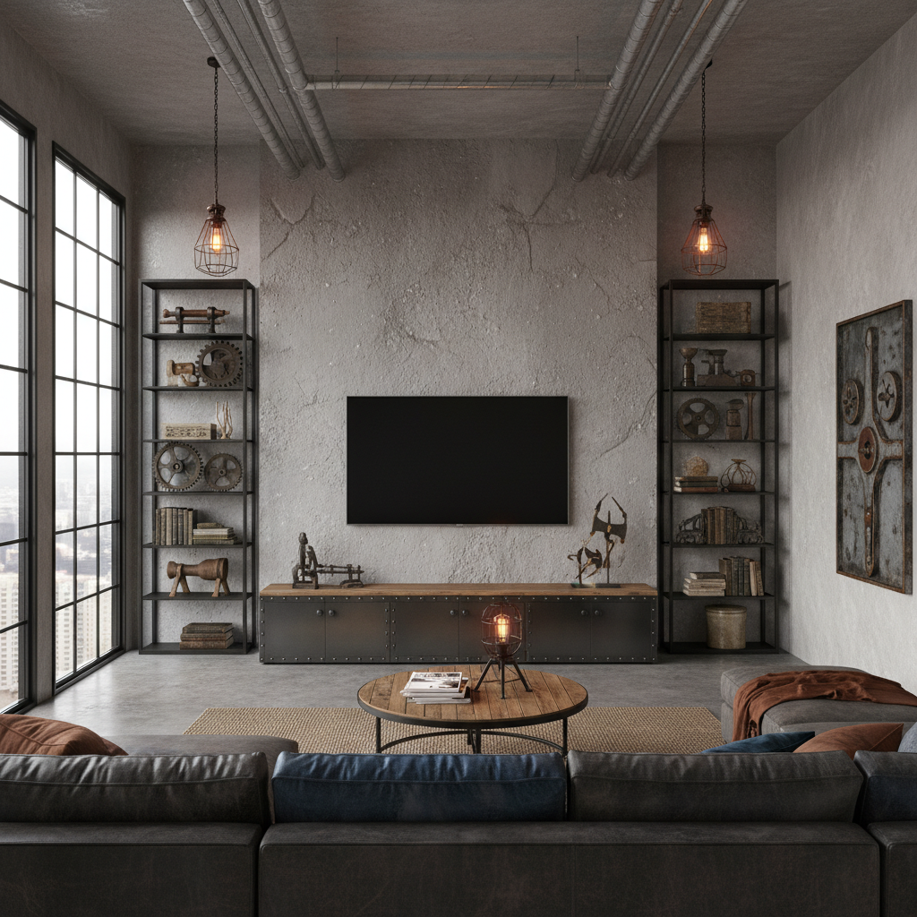 Embrace an urban, industrial vibe with a concrete-effect TV wall. This can be achieved with polished concrete, microcement, or even large-format porcelain tiles that mimic concrete’s raw beauty. The cool, grey tones and imperfect textures offer a sophisticated edge. Pair this with black metal accents, exposed brick, or warm wood furniture for a balanced, contemporary look that feels both edgy and inviting.