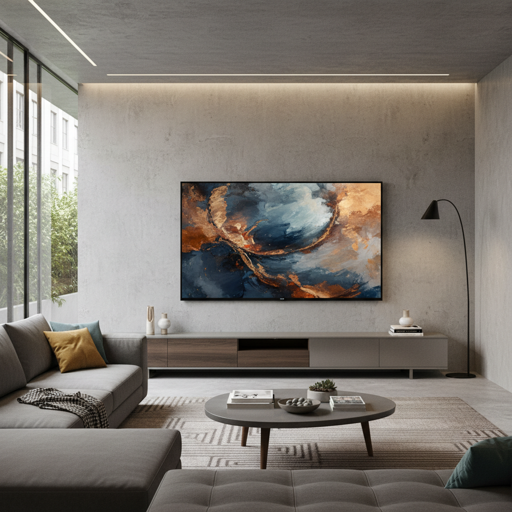 Beyond traditional viewing, consider a TV that doubles as a digital art display when not in use. Many modern televisions offer an ‘Art Mode’ that showcases high-resolution artwork, transforming your screen into a dynamic canvas. Integrate this into a minimalist wall design to enhance the artistic appeal of your living room even when the TV is ‘off’.