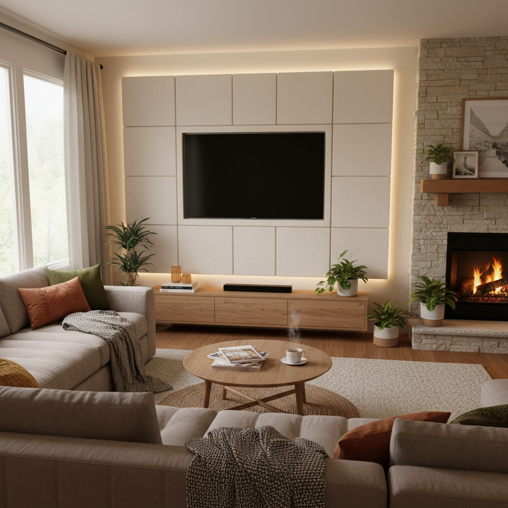 Enhance both aesthetics and sound quality with acoustic wall panels. These panels, often made from felt, wood slats, or fabric, reduce echo and improve audio clarity, perfect for a home theater experience. They come in various colors and textures, allowing you to create a stylish and functional TV feature wall that looks as good as it sounds.