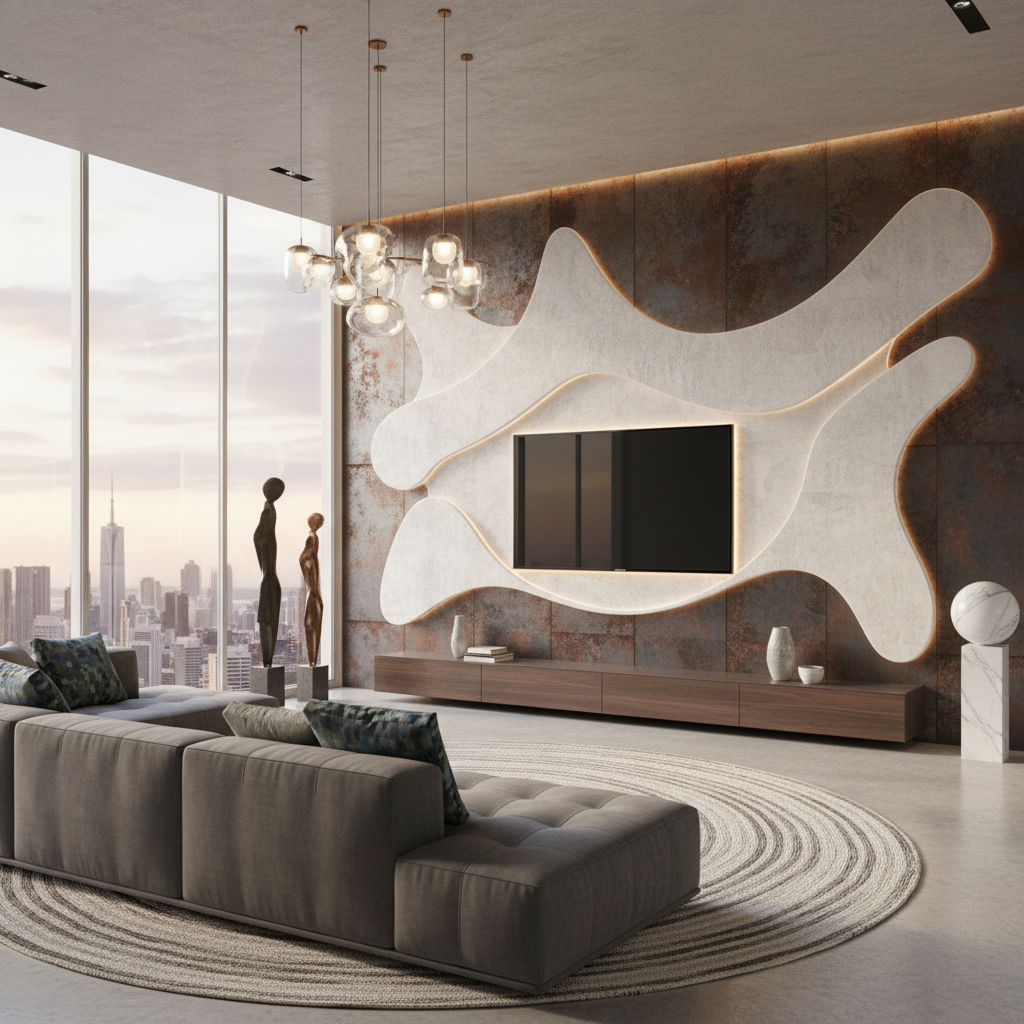 Elevate your TV wall with a luxurious textured plaster finish, such as Venetian plaster or Tadelakt. These hand-applied finishes create subtle variations in color and texture, adding depth, warmth, and an artisan touch. The organic, imperfect beauty of plaster provides a rich, tactile backdrop that feels both ancient and utterly modern.