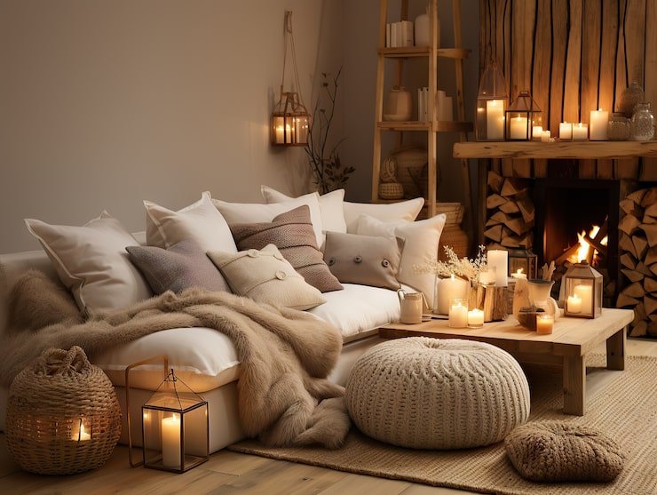 Candlelight instantly adds warmth and coziness. Choose soothing scents like vanilla, sandalwood, or cedar to make your space smell as inviting as it looks.