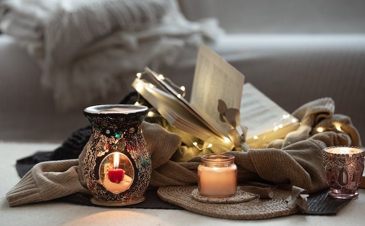 Use diffusers, potpourri, or scented candles with winter fragrances like pine, vanilla, or amber. A soothing scent completes the cozy atmosphere and makes your home feel extra inviting.