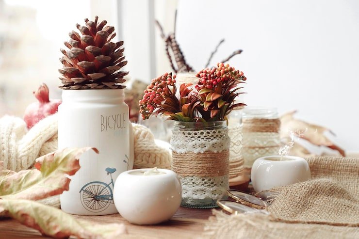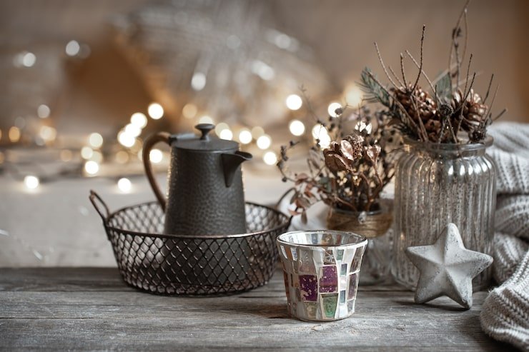 Add winter-scented items like pinecones, cinnamon sticks, or candles to create a cozy atmosphere.