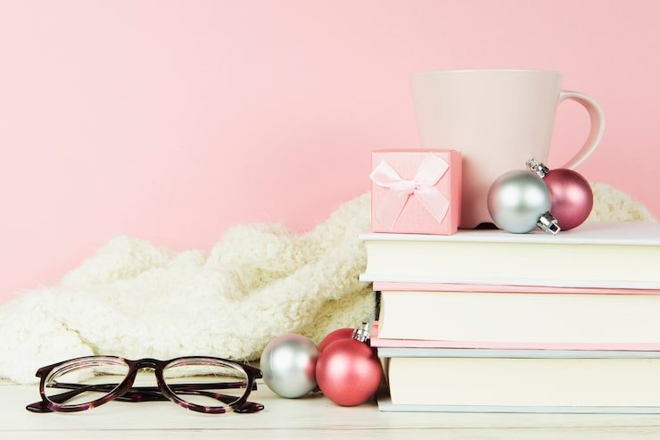 Stack books and decorate with winter ornaments, like snowflakes or pinecones.
